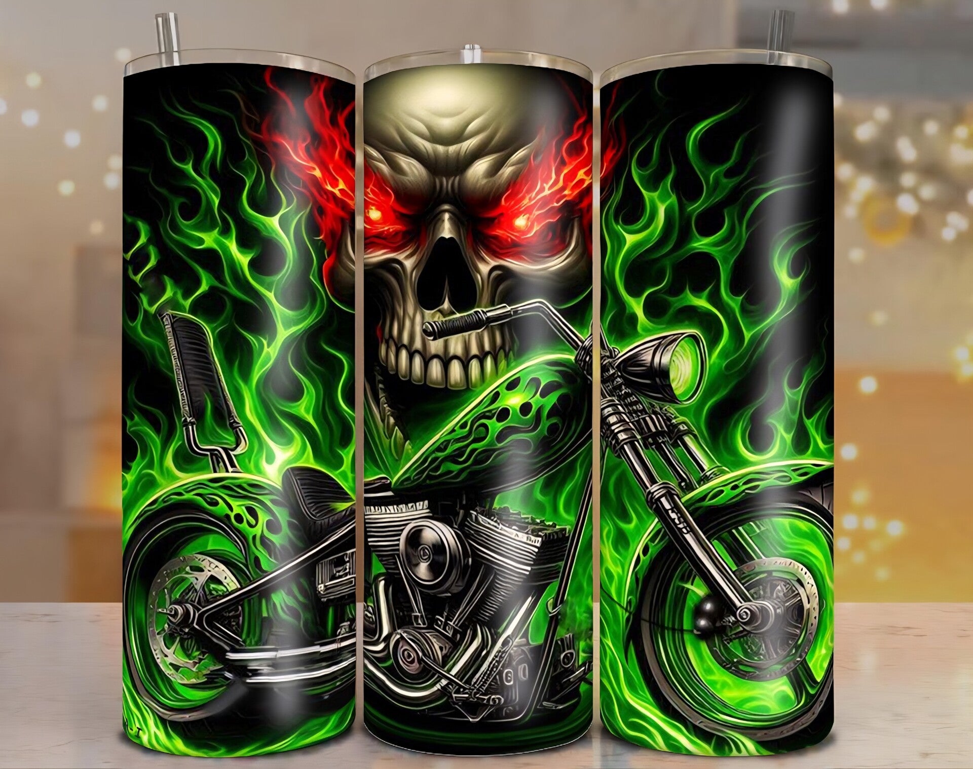 Skull Motorrad grün / 600ml